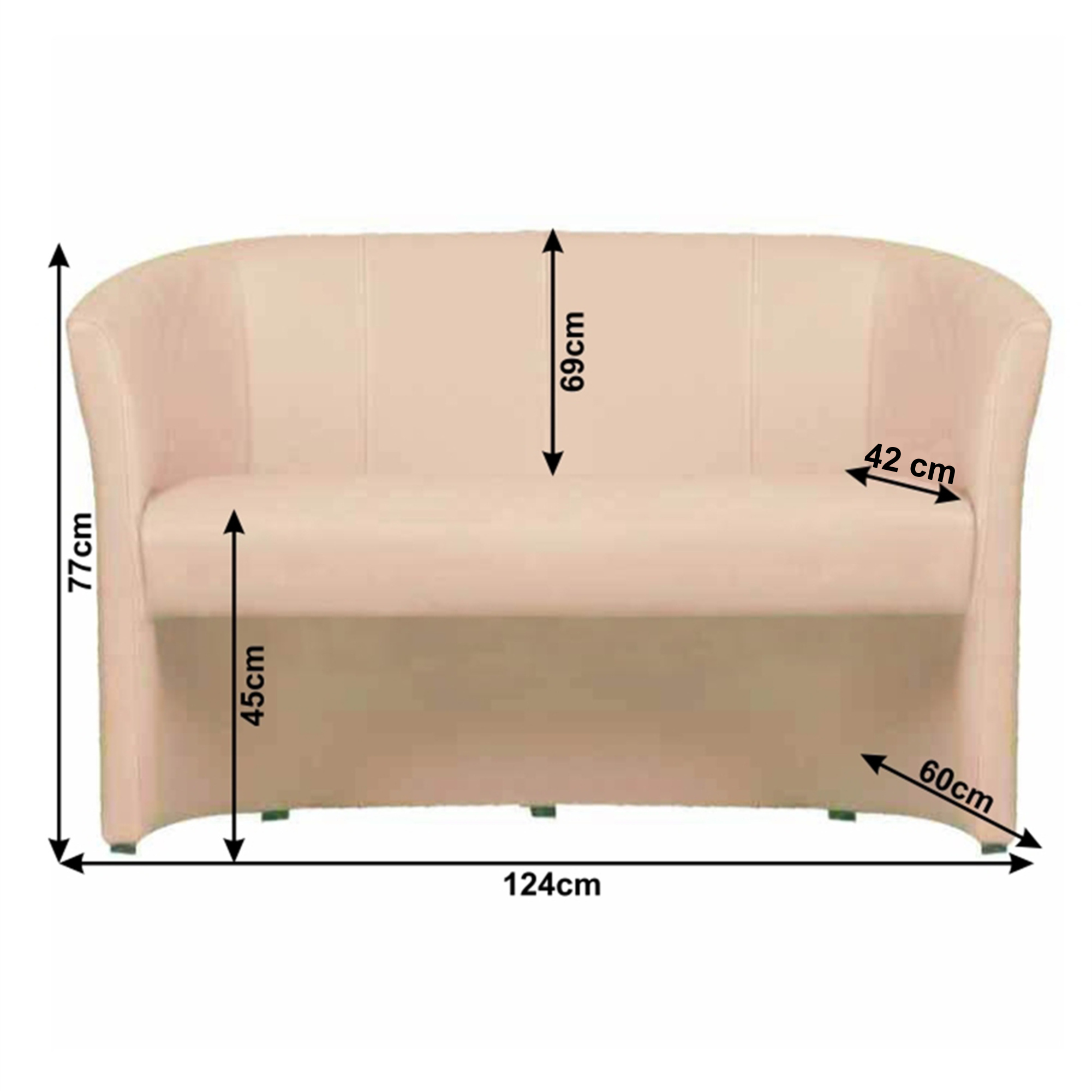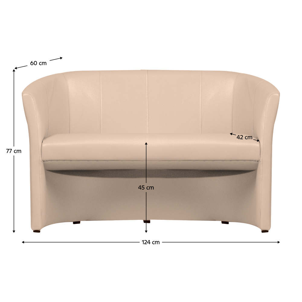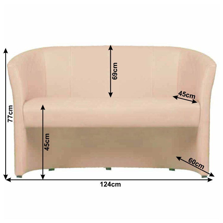 Materiál: ekokůže Oděruodolnost textilie podle testu Martindale: 100 000 oděrek Barva: béžová Výplň: purpena Rozměry (ŠxHxV): 124x60x77 cm Výška sedu: 45 cm Hloubka sedu: 42 cm Výška opěrky na záda: 69 cm Dodávané v monte Možnost objednat dvojkřeslo CUBA i v ekokůži nebo v látce Lava v ceně 5.090 Kč cena v látce Savana nebo v látce Soro, Kronos 4.850 Kč, v látce mikrofáze za cenu 4.490 Kč. Při individuální objednávce je třeba zaplatit 20% zálohu z dané částky. Po uhrazení zálohy bude Vaša objednávka zadána do výroby. Doba dodání 6-8 týdnů.