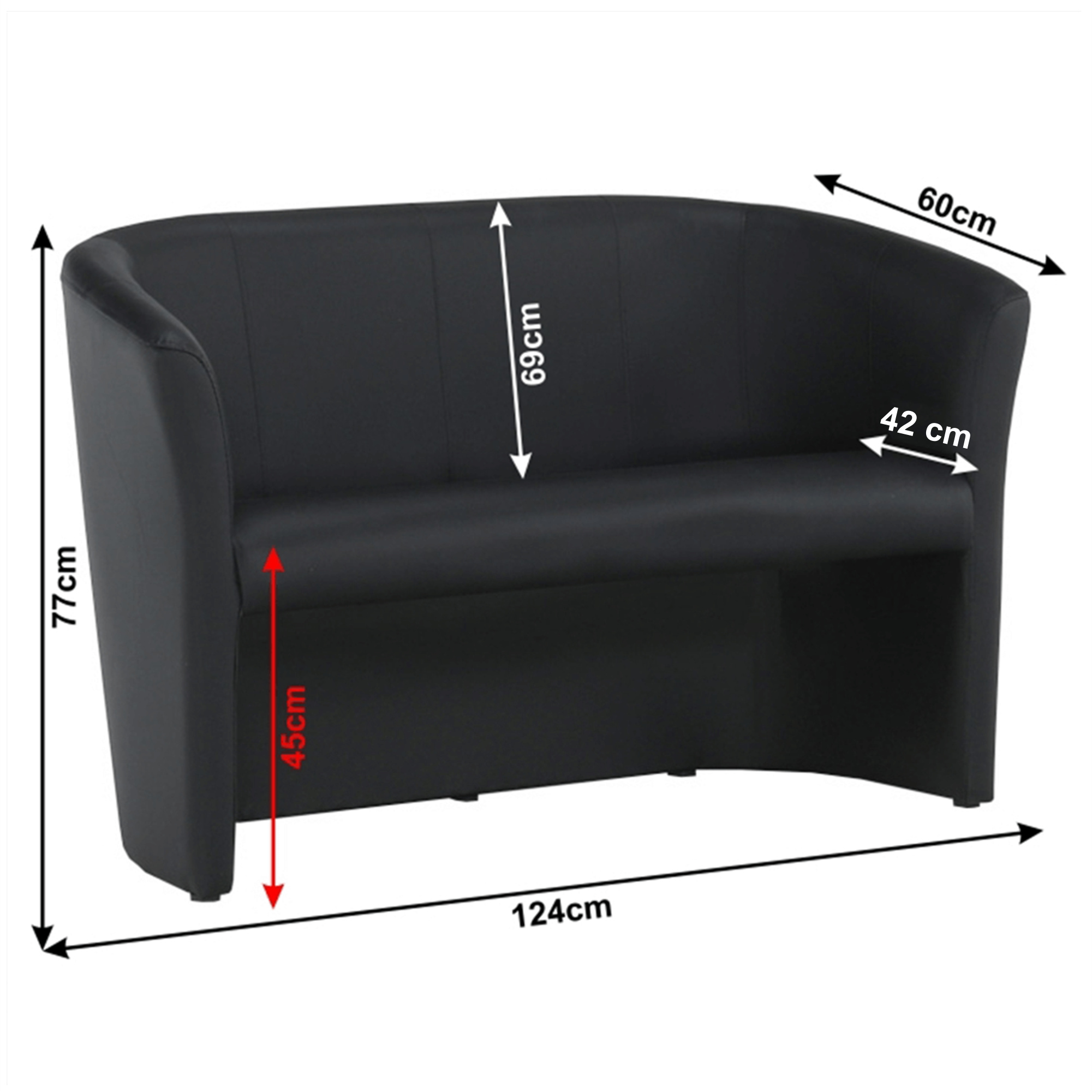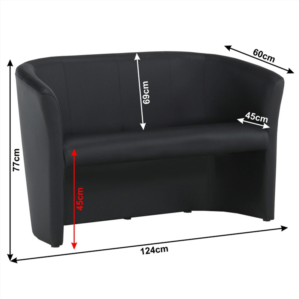 Materiál: ekokůže Oděruodolnost textilie podle testu Martindale: 100 000 oděrek Barva: černá Výplň: purpena Rozměry (ŠxHxV): 124x60x77 cm Výška sedu: 45 cm Hloubka sedu: 42 cm Výška opěrky na záda: 69 cm Dodávané v monte Možnost objednat dvojkřeslo CUBA i v ekokůži nebo v látce Lava v ceně 5.090 Kč cena v látce Savana nebo v látce Soro, Kronos 4.850 Kč, v látce mikrofáze za cenu 4.490 Kč. Při individuální objednávce je třeba zaplatit 20% zálohu z dané částky. Po uhrazení zálohy bude Vaša objednávka zadána do výroby. Doba dodání 6-8 týdnů.