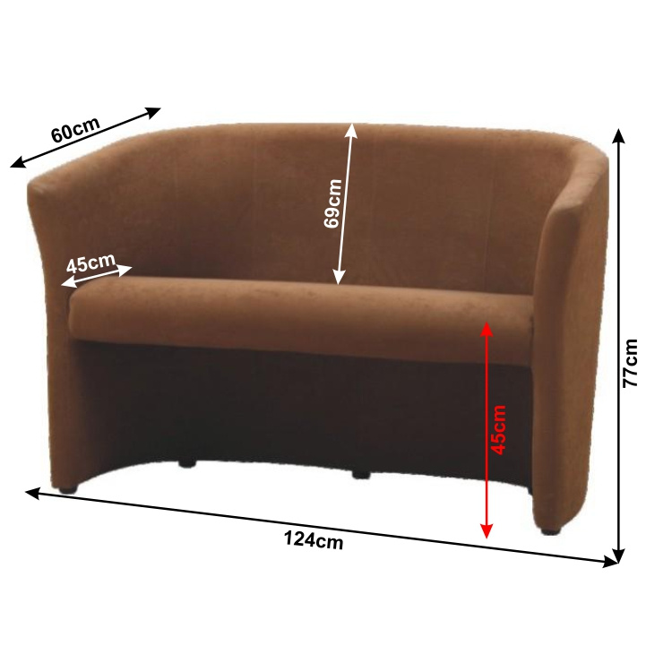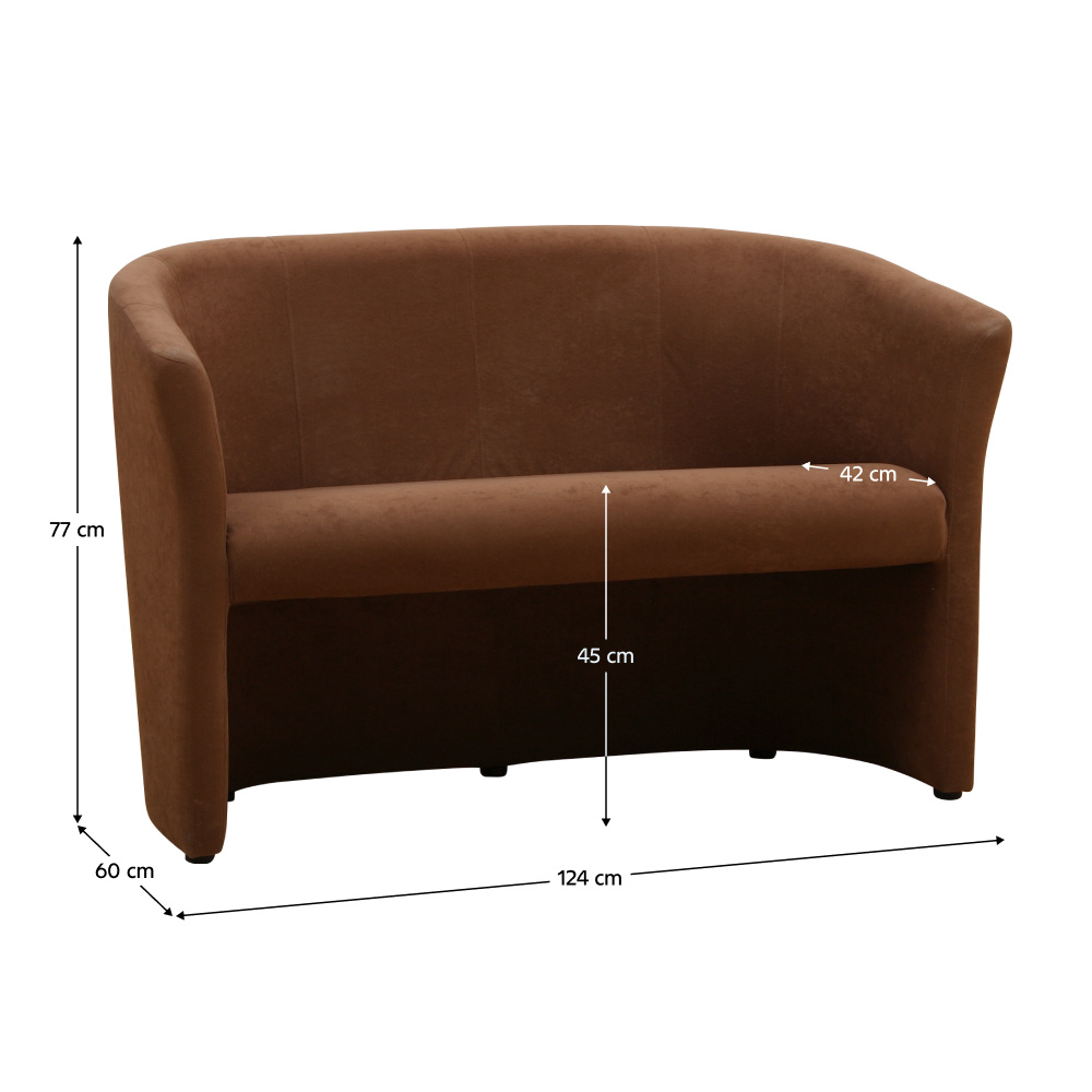 Materiál: látka Oděruodolnost textilie podle testu Martindale: 85 000 oděrek Barva: hnědá Výplň: purpena Rozměry (ŠxHxV): 124x60x77 cm Výška sedu: 45 cm Hloubka sedu: 42 cm Výška opěrky na záda: 69 cm Dodávané v monte Možnost objednat dvojkřeslo CUBA i v: mikrofázi za cenu 4.850 Kč, ekokůži nebo v látce Lava v ceně 5.490 Kč, cena v látce Savana nebo v látce Soro a v látce Kronos za cenu 4.990 Kč. Při individuální objednávce je třeba zaplatit 20% zálohu z dané částky. Po uhrazení zálohy bude Váš požadavek zadán do výroby. Doba dodání 6-8 týdnů.