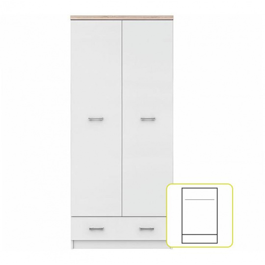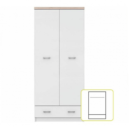 Dvoudveřová skříň 2D1S, bílá / dub sonoma, TOPTY TYP 01