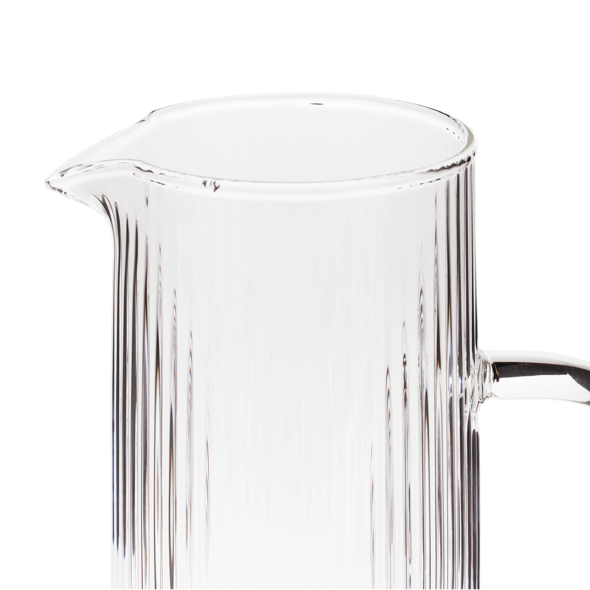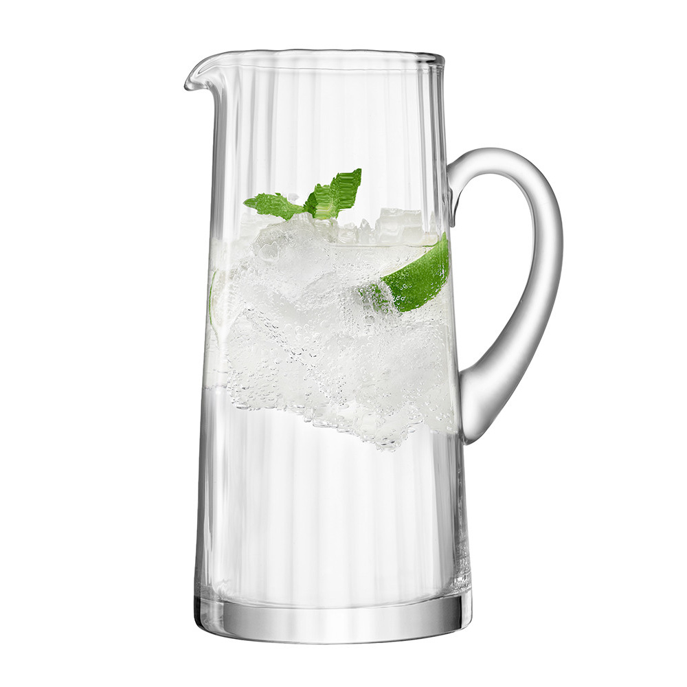 Materiál: sklo Barva: čirá Rozměr (průměr x V): 7,5x24,5 cm Objem džbánu: 1 270 ml Moderní styl Vroubkovaný vzor Džbán na vodu, limonádu, minerálku, sodu, colu, drinky a koktejly, ledový čaj, ledovou ovocnou drť, pivo Handmade Ručně vyrobený z foukaného vysoce kvalitního borosilikátového skla Se vzorem S víkem S kovovým sítem/filtrem na víku Nevhodný do myčky nádobí Nedoporučuje se použití v mikrovlnné troubě Hmotnost: 0,3 kg