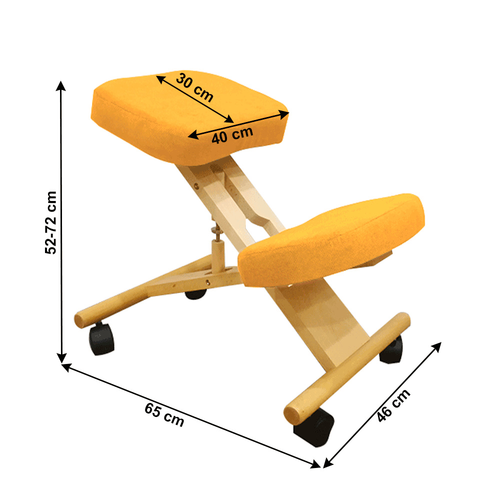 Materiál čalounění: látka Oděruodolnost textilie podle testu Martindale: 80 000 oděrek Barva: oranžová Materiál konstrukce: dřevo Barva: buk Rozměry (ŠxHxV): 46x65x52-72 cm Výška sedu: 52-72 cm Hloubka sedu: 30 cm Šířka sedu: 40 cm Nosnost: 100 kg ergonomická Vhodný k PC stolům na kolečkách Dodávané v demontu
