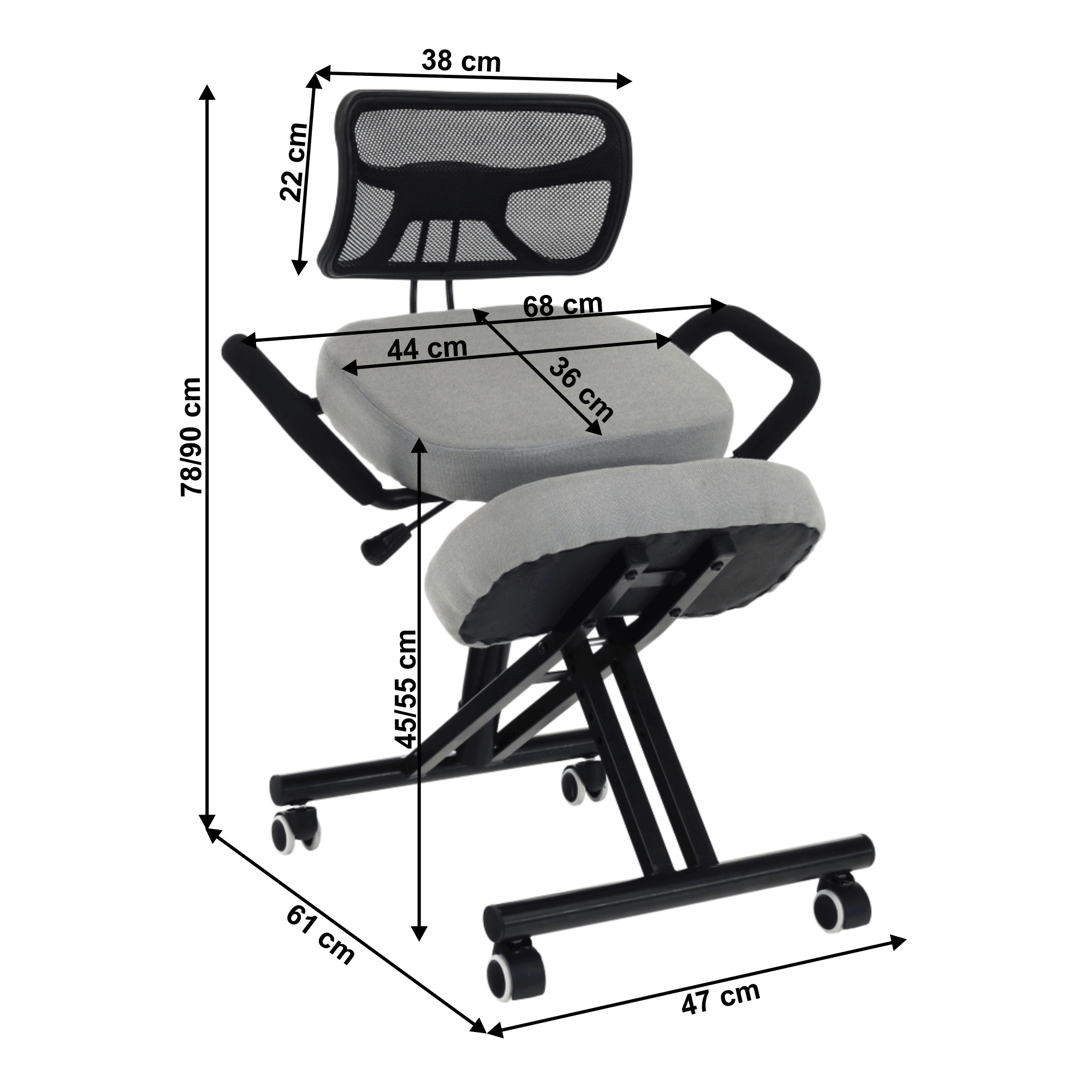Materiál čalounění: látka Oderuodolnosť textílie podľa testu Martindale: 60 000 oderov Barva: šedohnědá Taupe Materiál konstrukce: kov Barva: černý nátěr Rozměry (ŠxHxV): 68x61x78-90 cm Výška sedu: 45-55 cm Hloubka sedu: 36 cm Šířka sedu: 44 cm Šířka zádové opěrky: 38 cm Výška zádové opěrky: 22 cm Nosnost: 110 kg bederní opěrka Opěrky na ruce Univerzální kolečka vhodná pro měkké i tvrdé podlahy ergonomická Dodávané v demontu