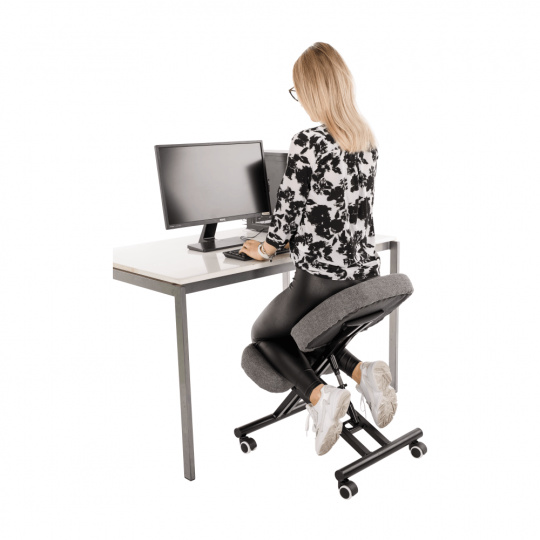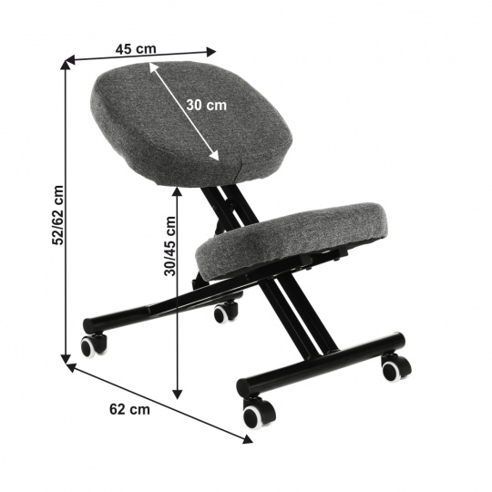 Materiál čalounění: látka Oděruodolnost textilie podle testu Martindale: 60 000 oděrek Barva: světlešedá Materiál konstrukce: kov Barva: černý nátěr Rozměry (ŠxHxV): 45x62x52-62 cm Výška sedu: 30-45 cm Hloubka sedu: 30 cm Šířka sedu: 35 cm Šířka zádové opěrky: 35 cm Nosnost: 110 kg Univerzální kolečka vhodná pro měkké i tvrdé podlahy Ergonomická Dodávané v demontu