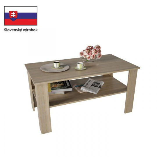 Konferenční stolek GAUDI Materiál: DTD laminovaná Provedení: dub sonoma Rozměry (ŠxHxV): 110x60x55 cm. Tloušťka materiálu: 16 mm Kvalitní slovenský výrobek. Dodáván v demontu.