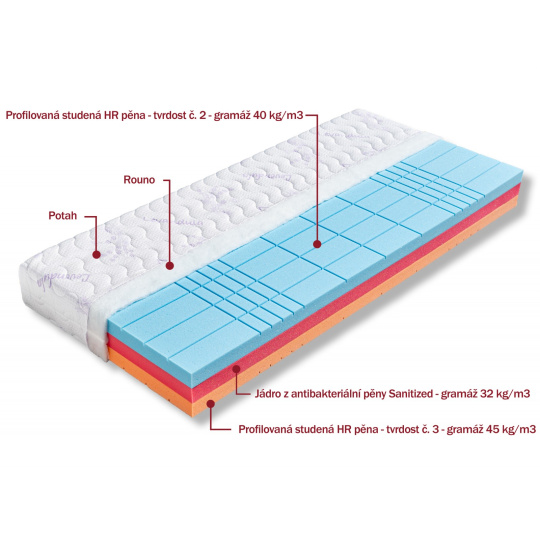 | výška včetně potahu | úplet, Aloe Vera | SilverGuard, Lyocell, Medicott, Levandule |