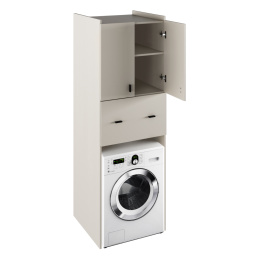 Materiál: DTD laminovaná Barva: kašmír Rozměry (ŠxHxV): 64x60x190 cm Prostor pro pračku (ŠxV): 60,8x85,2 cm S úložným prostorem Skříňka s policemi Šuplík Nosnost šuplíku a polic: 5 kg Tloušťka materiálu korpus: 16 mm Prostor pro pračku Kvalitní slovenský výrobek Dodáváno v demontu