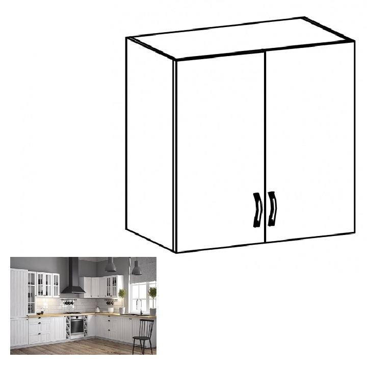 Horní skříňka s dvěma dvířky a jednou policí ke kuchyni Provance Provedení: DTD laminovaná / MDF Barva: bílý / sosna andersen Rozměry (ŠxHxV): 80x32x72 cm Tloušťka materiálu: 15 mm Systém tichého zavírání dvířek Spodní skříňky jsou dodávány bez pracovní desky. Pracovní deska v tloušťce 3 cm. Ke spodním skříňkám je třeba doobjednat sokl. Ke každé spodní skříňce, kromě dřezové D25PZ, je třeba doobjednat ještě 2 kusy úchytů na sokl. Cena za pracovní desku dub lancelot je 1.890, - Kč za bm- tloušťka je 38 mm, cena za spodní lištu je 390, - Kč za bm. Cena ukončení na sokl s hloubkou 47 cm nebo 58 cm je 210 Kč. Ke každé dolní skříňce, kromě D25PZ, je třeba doobjednat 2 ks úchytek na sokl - cena 40, - Kč / 2Ks.