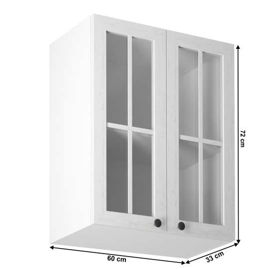 Horní dvoudveřová skříňka se sklem G60, bílá / sosna andersen, PROVANCE