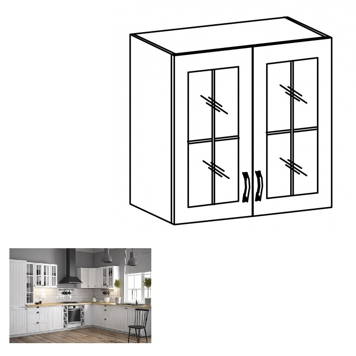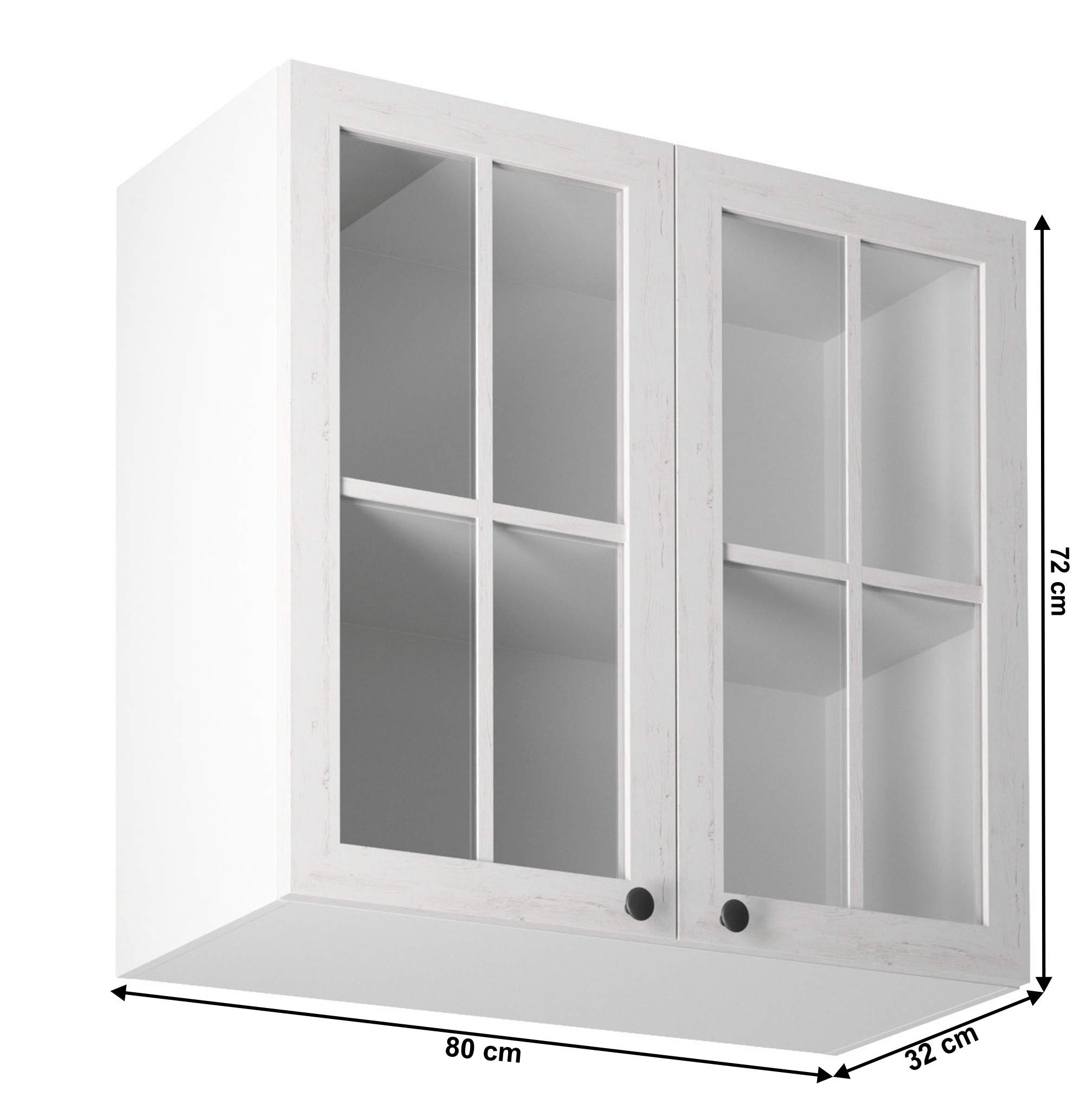 Horní dvoudveřová skříňka se sklem G80, bílá / sosna andersen, PROVANCE