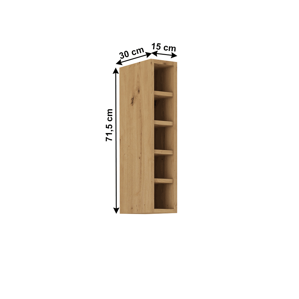 Materiál: laminovaná DTD Barva: dub artisan Rozměry (ŠxHxV): 15x30x71,5 cm Tloušťka materiálu: 1,6 cm otevřená Se 4 policemi Moderní dynamický design Dodávané v demontu Možnost dokoupení pracovní desky dub artisan v ceně: 1 890 Kč/m Možnost t dokoupení univerzálního P / Ľ dřezu LAY ON.