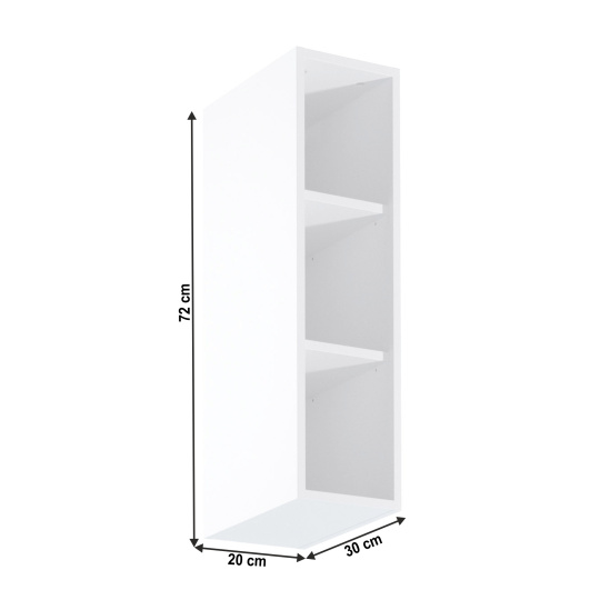 Horní otevřená skříňka W200 ke kuchyni SICILIA Provedení: DTD laminovaná Barva: bíla Rozměry (ŠxHxV): 20x30x72 cm Tloušťka materiálu: 15 mm Spodní skříňky jsou dodávány bez pracovní desky. Můžete si objednat pracovní desku royal beigemarble k provedení ořech Milano - tloušťka 28mm za 1.590 Kč/bm a nebo pracovní desku dub Lancelot k provedení sosna andersen - tloušťka 38 mm za 1.690 Kč/bm.