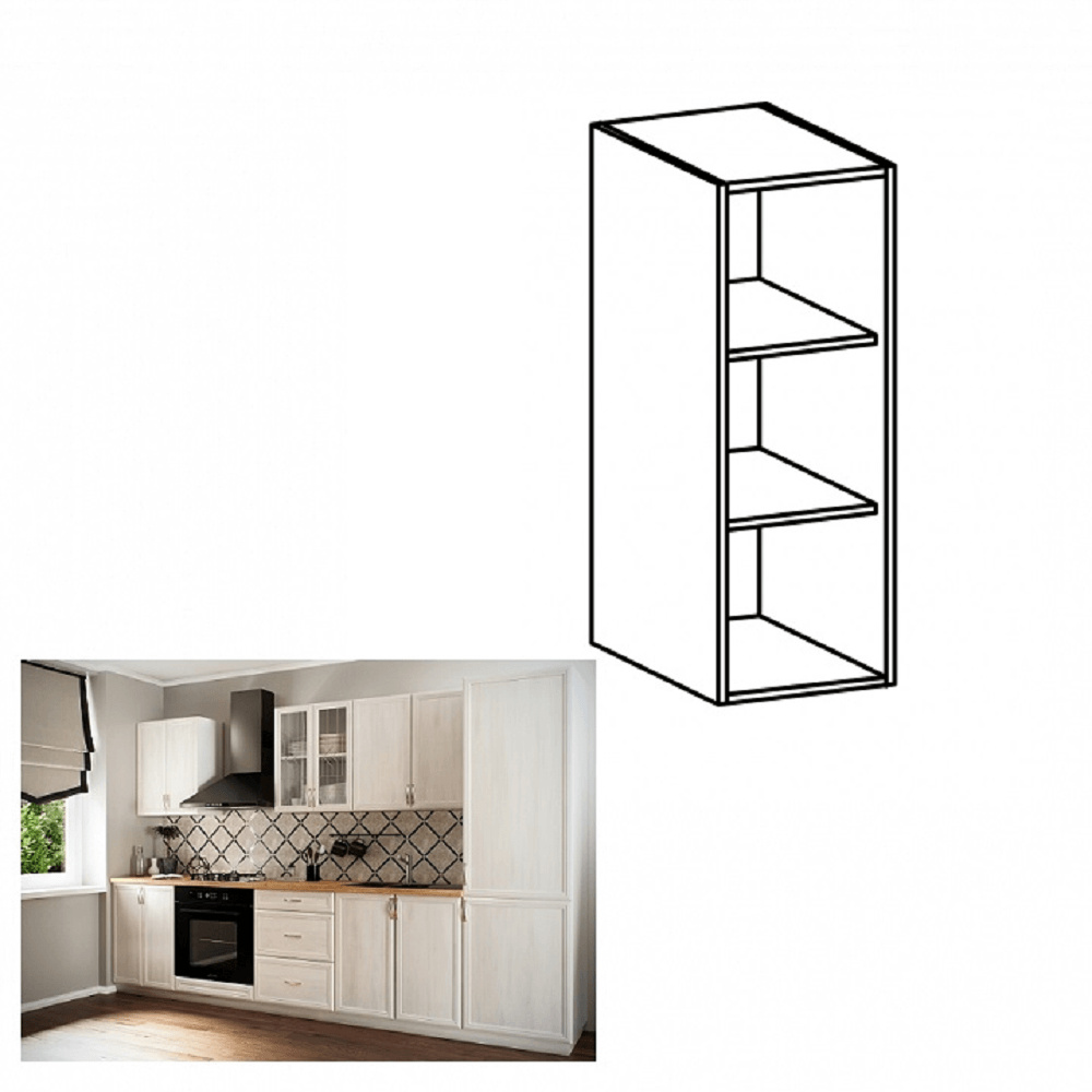 Horní otevřená skříňka W200 ke kuchyni SICILIA Provedení: DTD laminovaná Barva: bíla Rozměry (ŠxHxV): 20x30x72 cm Tloušťka materiálu: 15 mm Spodní skříňky jsou dodávány bez pracovní desky. Můžete si objednat pracovní desku royal beigemarble k provedení ořech Milano - tloušťka 28mm za 1.790 Kč/bm a nebo pracovní desku dub Lancelot k provedení sosna andersen - tloušťka 38 mm za 1.890 Kč/bm.