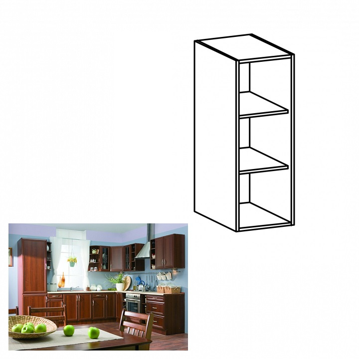 Horní otevřená skříňka W200 ke kuchyni SICILIA Provedení: DTD laminovaná Barva: ořech Milano Rozměry (ŠxHxV): 20x30x72 cm Tloušťka materiálu: 15 mm Spodní skříňky jsou dodávány bez pracovní desky. Můžete si objednat pracovní desku royal beigemarble k provedení ořech Milano - tloušťka 28mm za 1.590 Kč/bm a nebo pracovní desku dub Lancelot k provedení sosna andersen - tloušťka 38 mm za 1.690 Kč/bm.