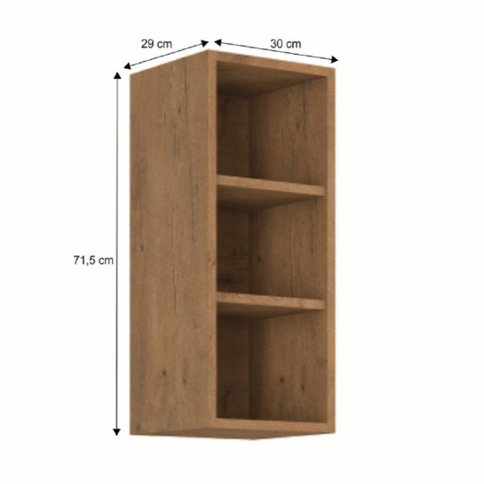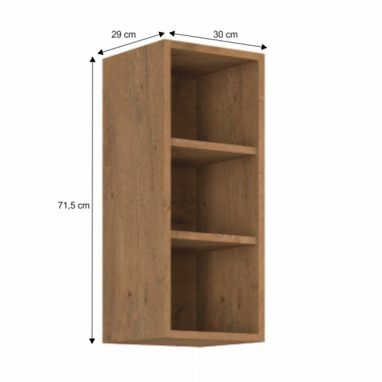 Horní policová skříňka VEGA 30 G-72 OTW Materiál: DTD laminovaná Barva: dub lancelot Rozměry (ŠxHxV): 30x29x71,5 cm Dodávané v demontu Spodní skříňky jsou dodávány včetně dolní lišty, bez pracovní desky. Možnost dokoupit pracovní desku dub lancelot v ceně: 1590 Kč/bm. Možnost dokoupit univerzální L / P dřez LAY ON.