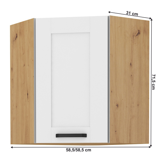 Horní rohová skříňka, bílá/dub artisan, LULA 58x58 GN-72 1F