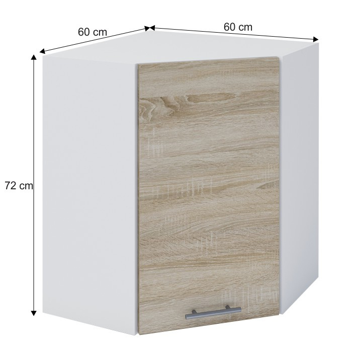 Horní rohová skříňka, dub sonoma/bílá, pravá, FABIANA W - 60N