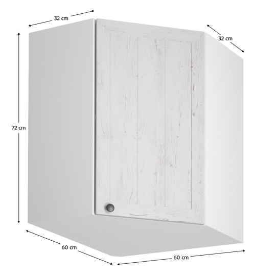 Horní rohová skříňka G60N, bílá/sosna andersen, pravá, PROVANCE