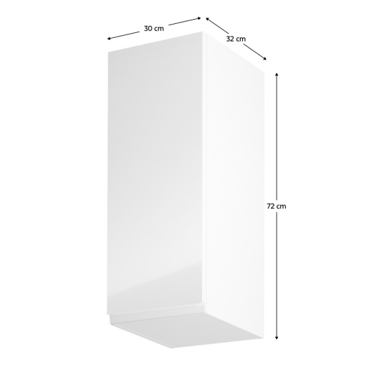 Horní skříňka, Aurora G30, levá Provedení: DTD laminové / MDF Barva: bílá / bílá lakovaná extra vysoký lesk Rozměry (ŠxHxV): 30x32x72 cm Tloušťka materiálu: 15 mm Systém tichého zavírání dvířek Pracovní deska není součástí skříněk. Je možné si doobjednat pracovní desku v provedení dub artisan o tloušťce 38 mm za 1.690 Kč/bm. Možnost dokoupit dřez, dřezovou baterii a příslušenství. Ke spodním skříňkám máte možnost dokoupit spodní lištu/sokl v bílé barvě o rozměru 1 bm za 280 Kč nebo 2 bm za 560 Kč a ukončení na sokl o hloubce 47 cm nebo 58 cm za 210 Kč. Ke každé dolní skříňce, kromě D25PZ, je třeba doobjednat 2 ks úchytek na sokl - cena 40 Kč/2ks.
