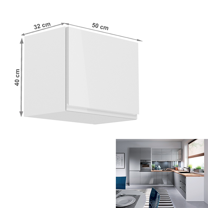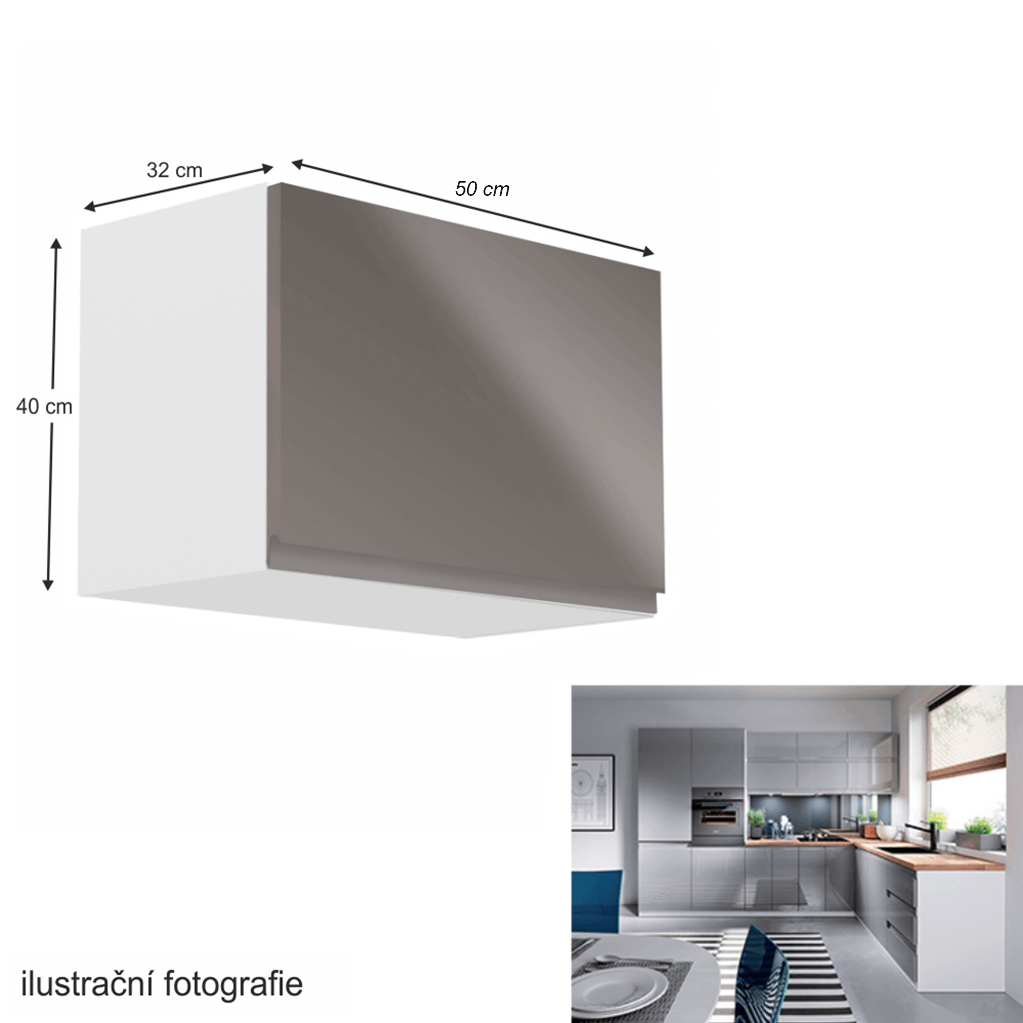Horní skříňka, bílá / šedý extra vysoký lesk, AURORA G50K