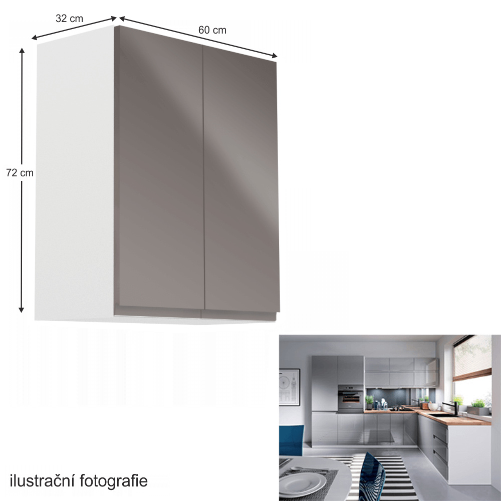Horní skříňka, bílá / šedý extra vysoký lesk, AURORA G60KN
