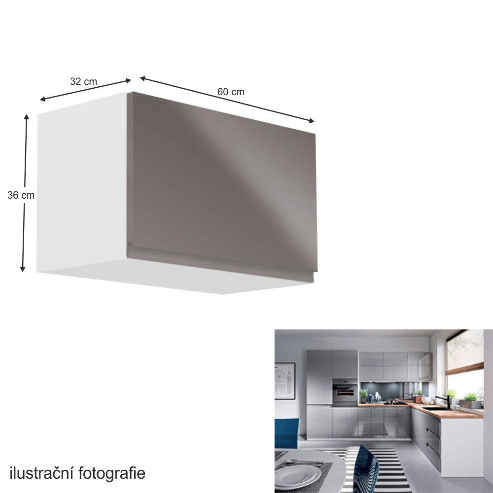Horní skříňka, bílá / šedý extra vysoký lesk, AURORA G60KN