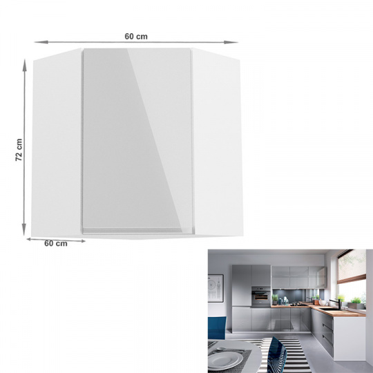Horní skříňka, Aurora G60N Provedení: DTD laminovaná / MDF Barva: bílá / šedá lakovaná extra vysoký lesk Rozměry (ŠxHxV): 60x60x72 cm Tloušťka materiálu: 15 mm Pracovní deska není součástí skříněk. Je možné si doobjednat pracovní desku v provedení dub artisan o tloušťce 38 mm za 1.690 Kč/bm. Možnost dokoupit dřez, dřezovou baterii a příslušenství. Ke spodním skříňkám máte možnost dokoupit spodní lištu/sokl v bílé barvě o rozměru 1 bm za 210 Kč nebo 2 bm za 420 Kč a ukončení na sokl o hloubce 47 cm nebo 58 cm za 140 Kč. Ke každé dolní skříňce, kromě D25PZ, je třeba doobjednat 2 ks úchytek na sokl - cena 30 Kč/2ks.