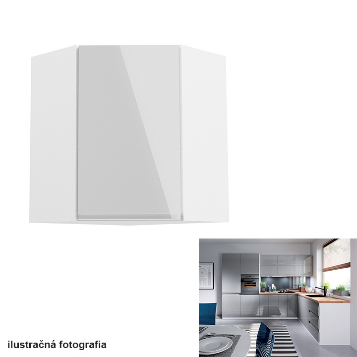 Horní skříňka, bílá / šedý extra vysoký lesk, levá, AURORA G30