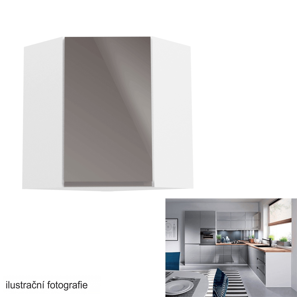Horní skříňka, bílá / šedý extra vysoký lesk, pravá, AURORA G30