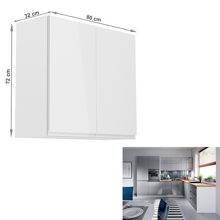 Horní skříňka, bílá / bílý extra vysoký lesk, AURORA G80