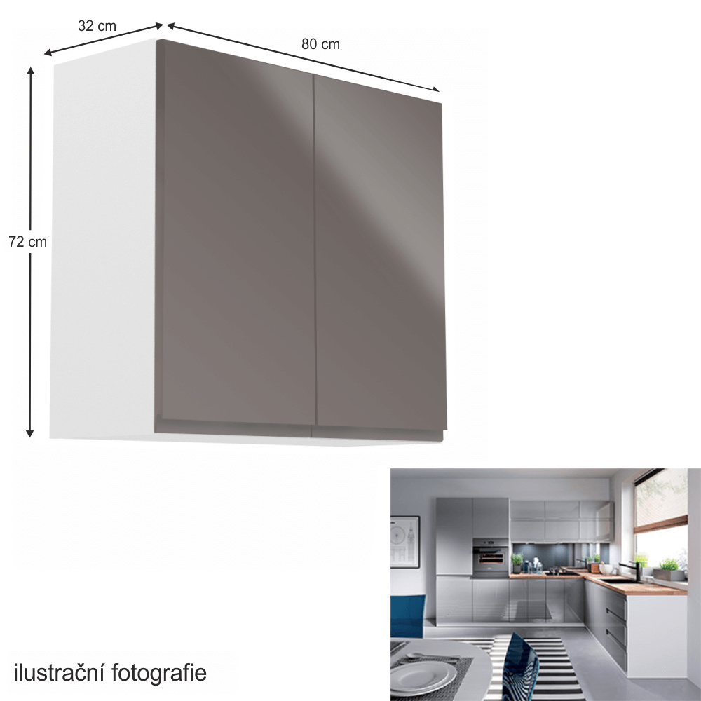 Horní skříňka, bílá / šedý extra vysoký lesk, AURORA G80K
