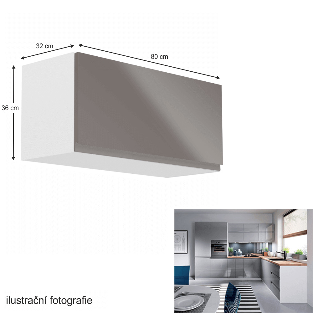 Horní skříňka, bílá / šedý extra vysoký lesk, AURORA G80K