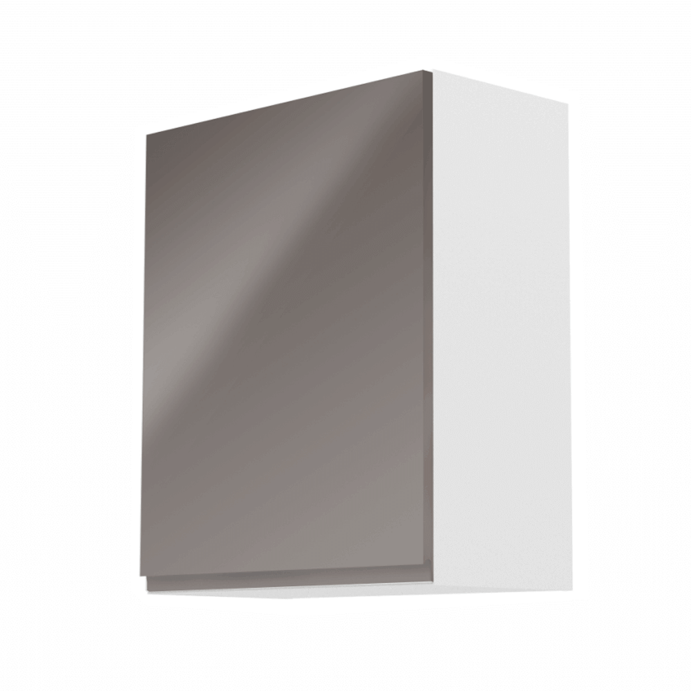 Horní skříňka, bílá / šedý extra vysoký lesk, levá, AURORA G601F