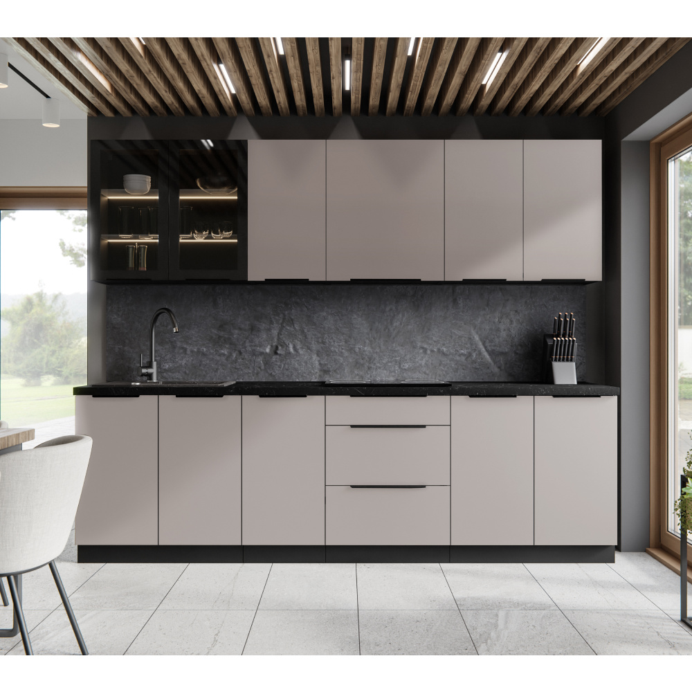 Materiál: laminovaná DTD Barva dvířek: cashmere/kašmír Barva korpus: černý mat Rozměry (ŠxHxV): 60x31x90 cm Tloušťka materiálu: 1,6 cm Policová Jednodveřová S dvířky S úchytkou Barva úchytky: aluminiová Moderní design Tichý doraz dvířek Dodáváno v demontu Spodní sektorové skříňky jsou dodávány včetně dolní lišty (sokla), bez pracovní desky. Pracovní desku o tloušťce 3,8 cm si můžete doobjednat v provedení marmur roma za cenu 1.650 Kč/bm.