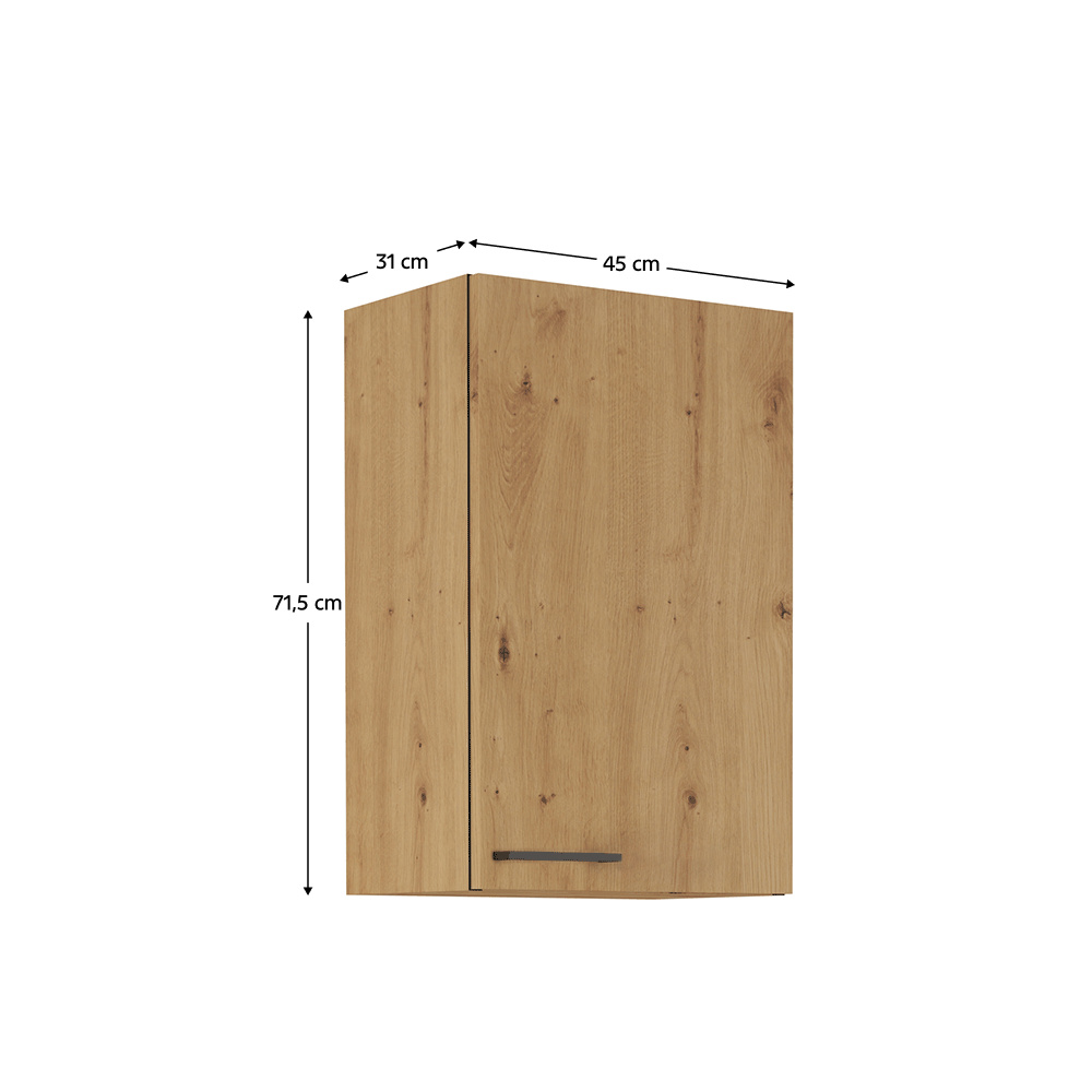 Materiál: laminovaná DTD Barva: dub artisan Rozměry (ŠxHxV): 45x31x71,5 cm Tloušťka materiálu: 1,6 cm jednodveřová S úchytkou Úchytka: 19,2 cm Tichý doraz dvířek Vnitřek skříňky je bílé Moderní dynamický design Dodávané v demontu Možnost dokoupení pracovní desky dub artisan v ceně: 1 890 Kč/m Možnost t dokoupení univerzálního P / Ľ dřezu LAY ON.