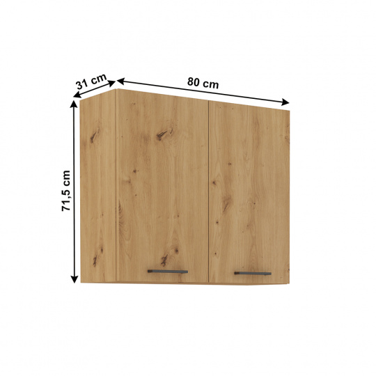 Materiál: laminovaná DTD Barva: dub artisan Rozměry (ŠxHxV): 80x31x71,5 cm Tloušťka materiálu: 1,6 cm dvoudveřová S úchytkami Úchytka: 19,2 cm Tichý doraz dvířek Vnitřek skříňky je bílé Moderní dynamický design Dodávané v demontu Možnost dokoupení pracovní desky dub artisan v ceně: 1 890 Kč/m Možnost t dokoupení univerzálního P / Ľ dřezu LAY ON.