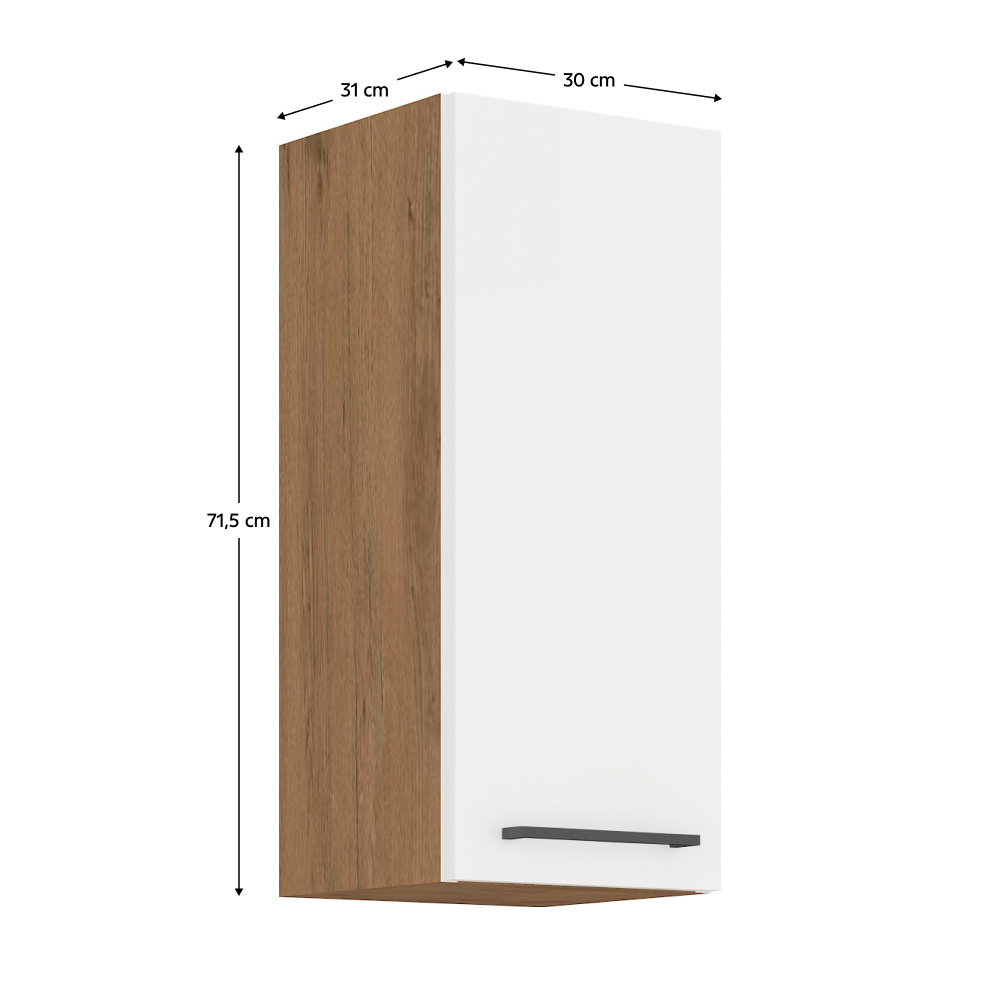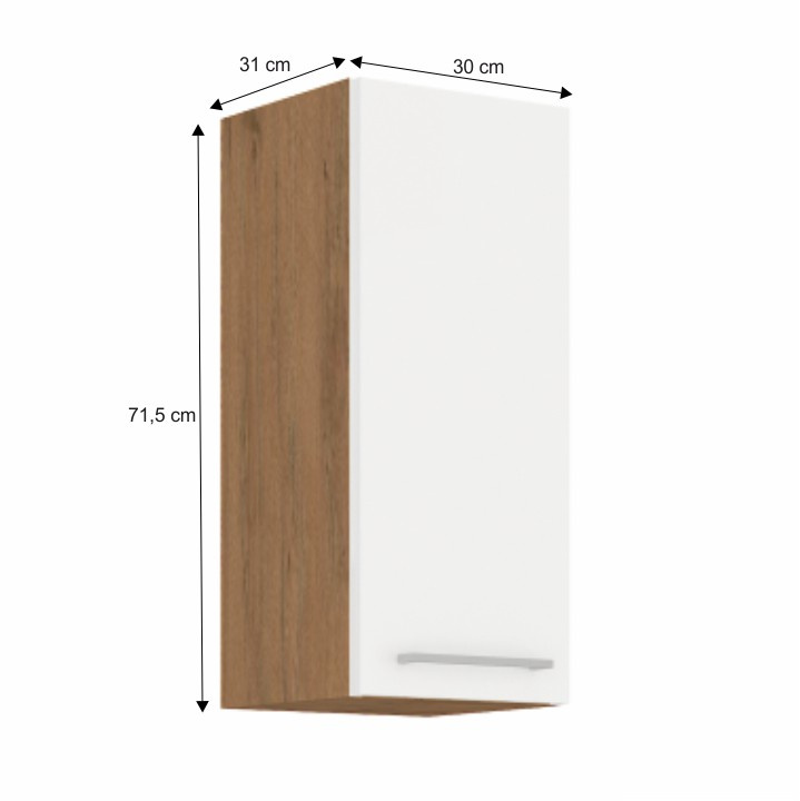 Horní skříňka VEGA 30 G-72 1F Materiál: DTD laminovaná Barva: dub lancelot / bílá extra vysoký lesk HG Rozměry (ŠxHxV): 30x31x71,5 cm Dodávané v demontu Spodní skříňky jsou dodávány včetně dolní lišty, bez pracovní desky. Možnost dokoupit pracovní desku dub lancelot v ceně: 1590 Kč/bm. Možnost dokoupit univerzální L / P dřez LAY ON.