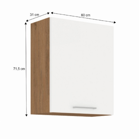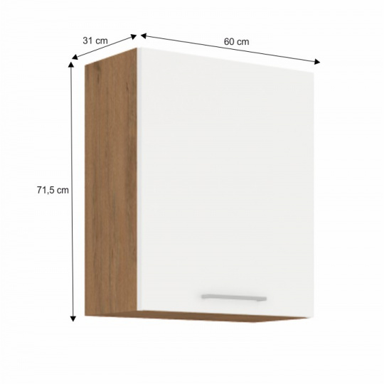Horní skříňka VEGA 60 G-72 1F Materiál: DTD laminovaná Barva: dub lancelot / bílá extra vysoký lesk HG Rozměry (ŠxHxV): 60x31x71,5 cm Dodávané v demontu Spodní skříňky jsou dodávány včetně dolní lišty, bez pracovní desky. Možnost dokoupit pracovní desku dub lancelot v ceně: 1590 Kč/bm. Možnost dokoupit univerzální L / P dřez LAY ON.