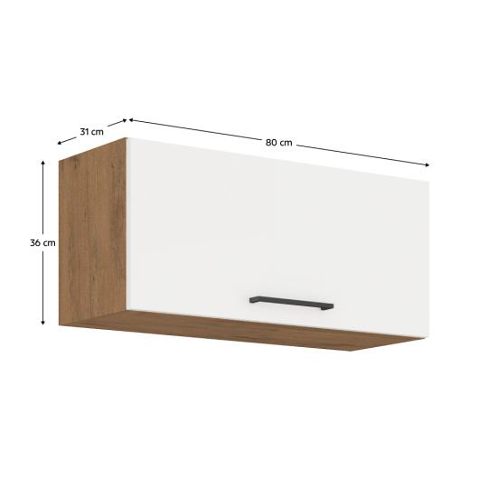 Horní skříňka, dub lancelot / bílá extra vysoký lesk HG, VEGA 80 GU-36 1F