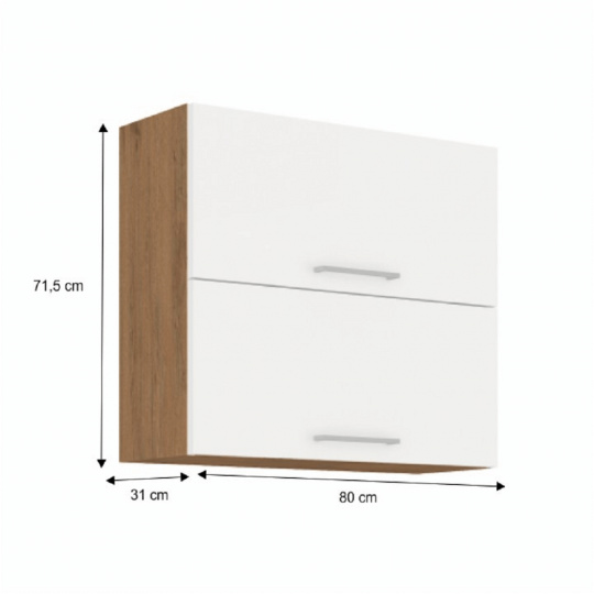 Horní skříňka VEGA 80 GU-72 2F Materiál: DTD laminovaná Barva: dub lancelot / bílá extra vysoký lesk HG Rozměry (ŠxHxV): 80x71,5x31 cm Dodávané v demontu Spodní skříňky jsou dodávány včetně dolní lišty, bez pracovní desky. Možnost dokoupit pracovní desku dub lancelot v ceně: 1590 Kč/bm. Možnost dokoupit univerzální L / P dřez LAY ON.