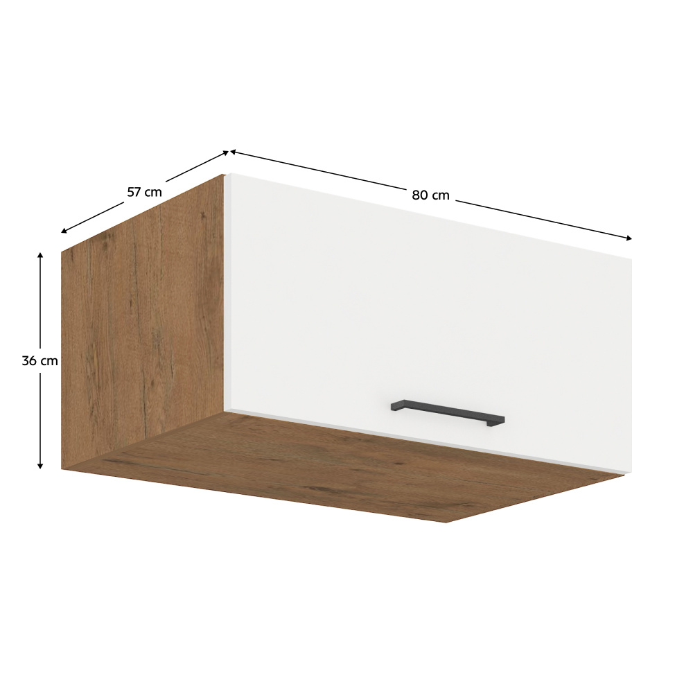 Horní skříňka, dub lancelot / bílá extra vysoký lesk HG, VEGA 80 Nagu-36 1F