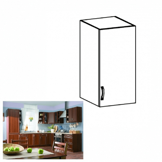 Horní skříňka G30 pravá ke kuchyni SICILIA Provedení: DTD laminovaná / lišty MDF Barva: ořech Milano Rozměry (ŠxHxV): 30x32x72 cm Tloušťka materiálu: 15 mm Spodní skříňky jsou dodávány bez pracovní desky. Můžete si objednat pracovní desku royal beigemarble k provedení ořech Milano - tloušťka 28mm za 1.590 Kč/bm a nebo pracovní desku dub Lancelot k provedení sosna andersen - tloušťka 38 mm za 1.690 Kč/bm.