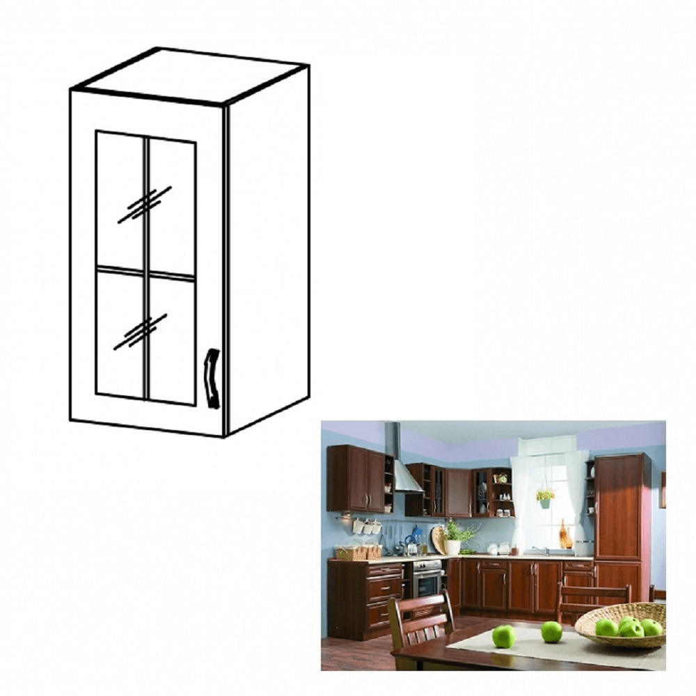 Horní skříňka G30S se sklem, levá, ořech Milano, SICILIA