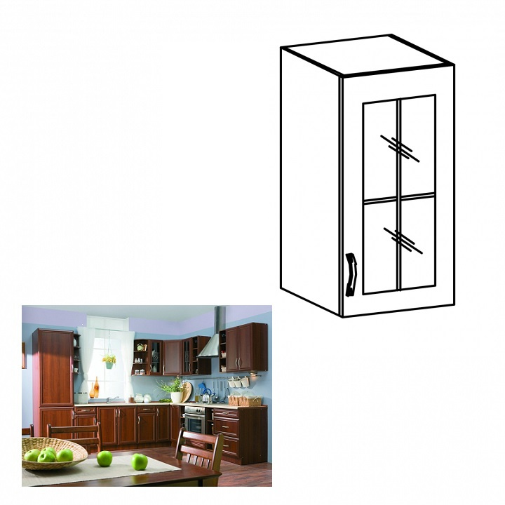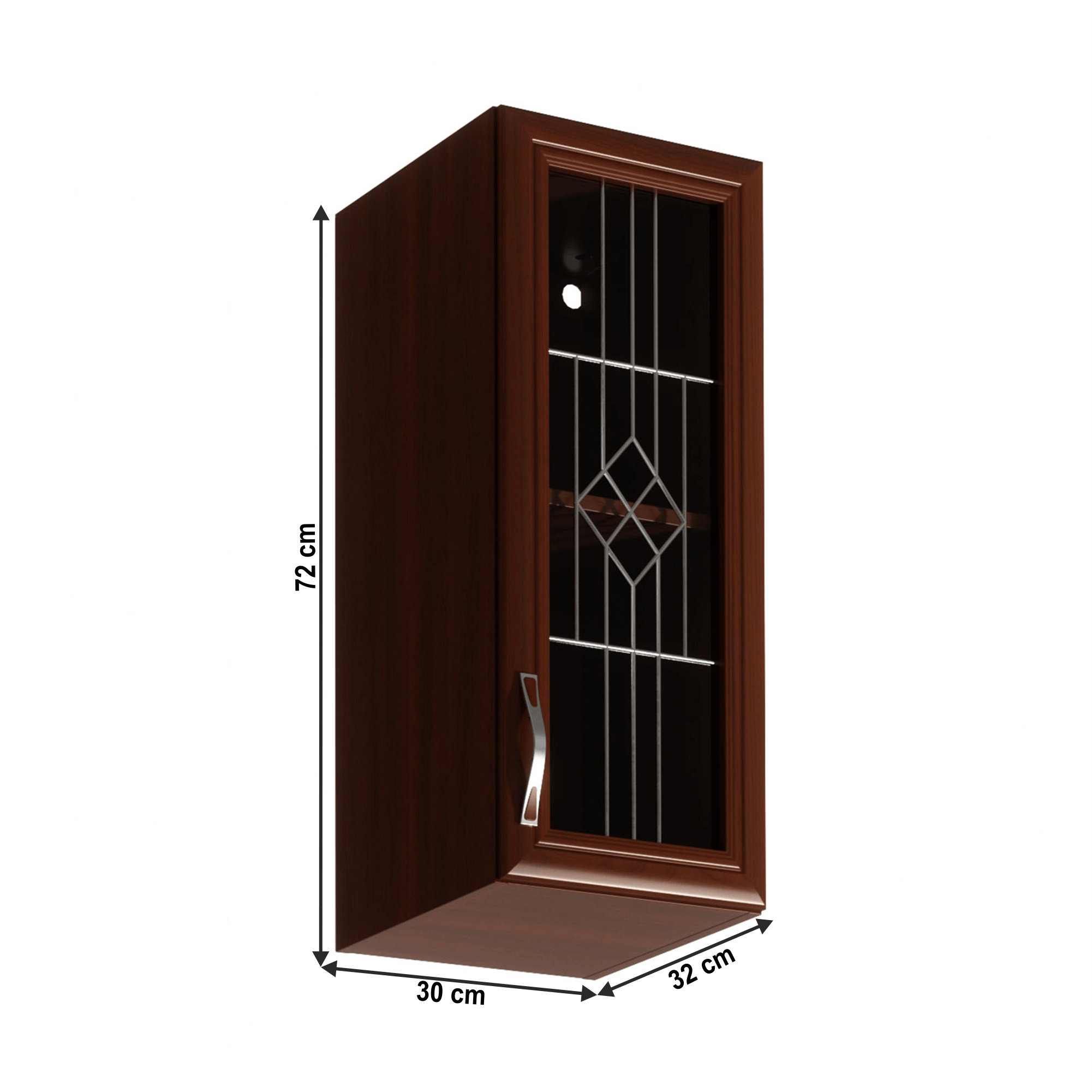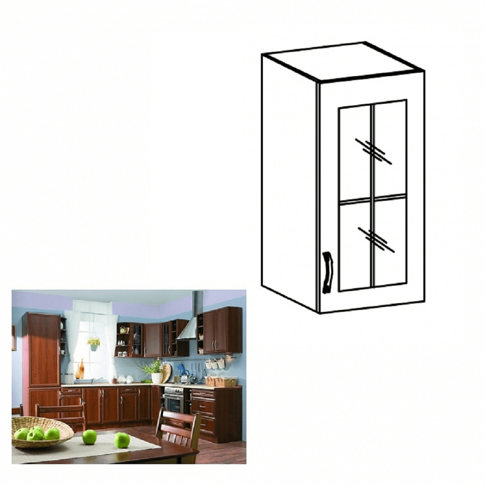 Horní skříňka G30S se sklem pravá ke kuchyni SICILIA Provedení: DTD laminovaná / lišty MDF/sklo Barva: ořech Milano Rozměry (ŠxHxV): 30x32x72 cm Tloušťka materiálu: 15 mm Spodní skříňky jsou dodávány bez pracovní desky. Můžete si objednat pracovní desku royal beigemarble k provedení ořech Milano - tloušťka 28mm za 1.790 Kč/bm a nebo pracovní desku dub Lancelot k provedení sosna andersen - tloušťka 38 mm za 1.890 Kč/bm.