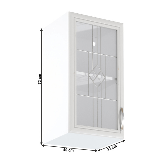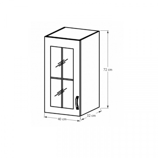 Horní skříňka G40S se sklem levá ke kuchyni SICILIA Provedení: DTD laminovaná/MDF lišty/sklo Barva: bíla/sosna Andersen Rozměry (ŠxHxV): 40x32x72 cm Tloušťka materiálu: 15 mm Spodní skříňky jsou dodávány bez pracovní desky. Můžete si objednat pracovní desku royal beigemarble k provedení ořech Milano - tloušťka 28mm za 1.590 Kč/bm a nebo pracovní desku dub Lancelot k provedení sosna andersen - tloušťka 38 mm za 1.690 Kč/bm.