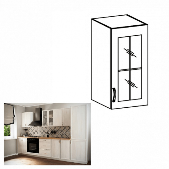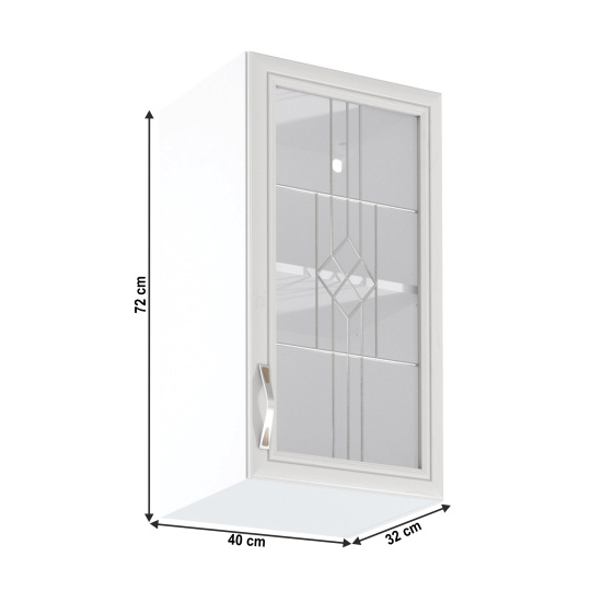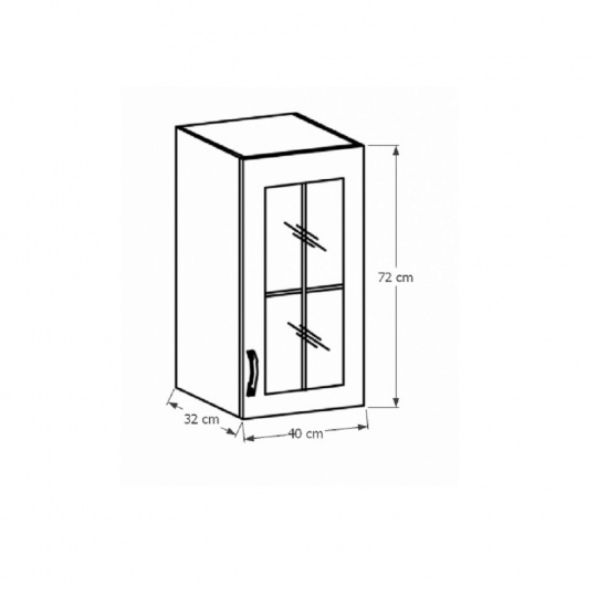 Horní skříňka G40S se sklem pravá ke kuchyni SICILIA Provedení: DTD laminovaná/MDF lišty/sklo Barva: bíla/sosna Andersen Rozměry (ŠxHxV): 40x32x72 cm Tloušťka materiálu: 15 mm Spodní skříňky jsou dodávány bez pracovní desky. Můžete si objednat pracovní desku royal beigemarble k provedení ořech Milano - tloušťka 28mm za 1.590 Kč/bm a nebo pracovní desku dub Lancelot k provedení sosna andersen - tloušťka 38 mm za 1.690 Kč/bm.