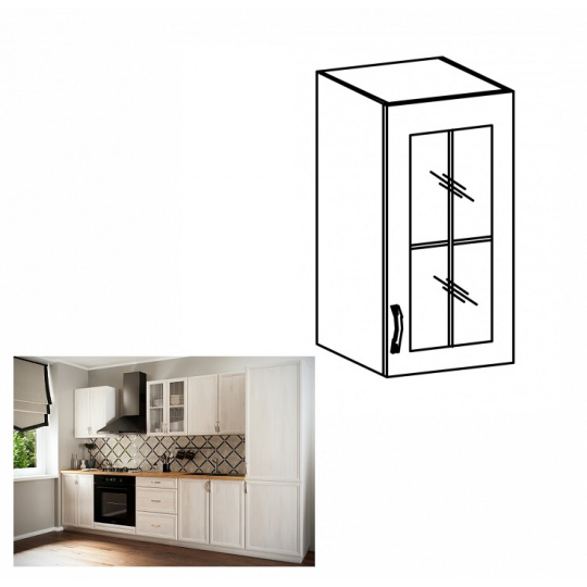 Horní skříňka G40S se sklem, pravá, bíla/sosna Andersen, SICILIA