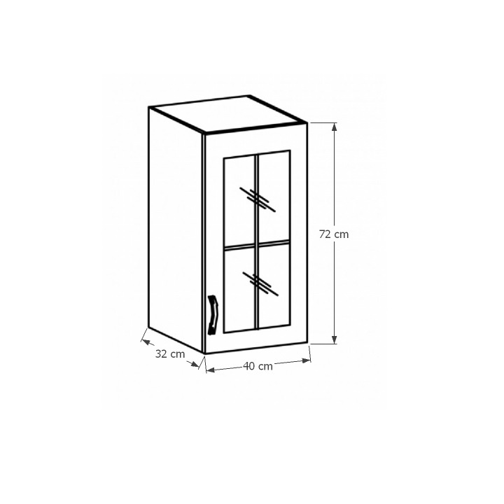 Horní skříňka G40S se sklem pravá ke kuchyni SICILIA Provedení: DTD laminovaná / lišty MDF/sklo Barva: ořech Milano Rozměry (ŠxHxV): 40x32x72 cm Tloušťka materiálu: 15 mm Spodní skříňky jsou dodávány bez pracovní desky. Můžete si objednat pracovní desku royal beigemarble k provedení ořech Milano - tloušťka 28mm za 1.790 Kč/bm a nebo pracovní desku dub Lancelot k provedení sosna andersen - tloušťka 38 mm za 1.890 Kč/bm.