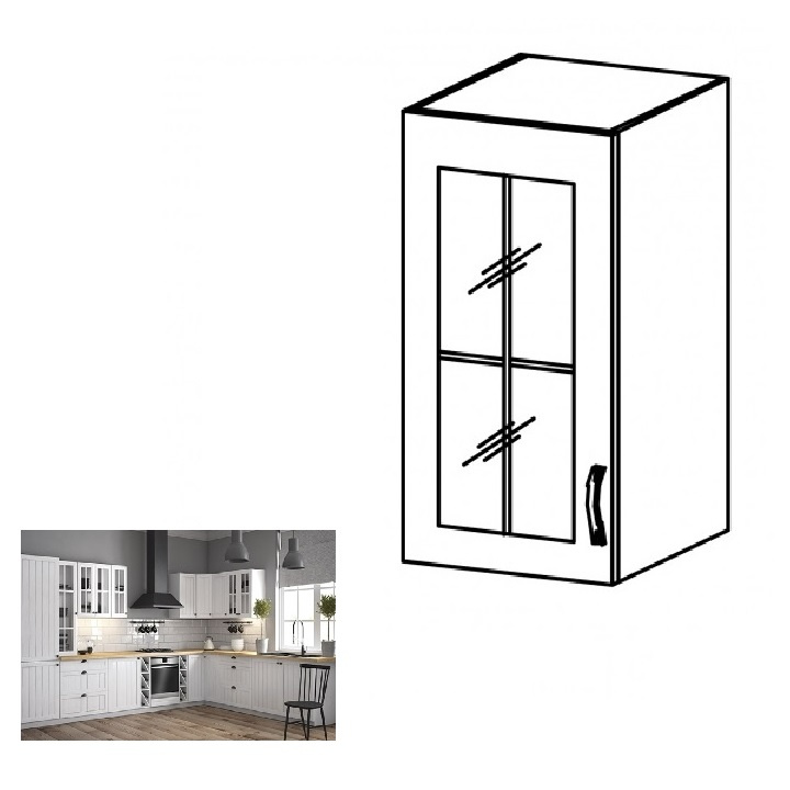 Horní skříňka se sklem G30S, levá, bílá /sosna andersen, PROVANCE