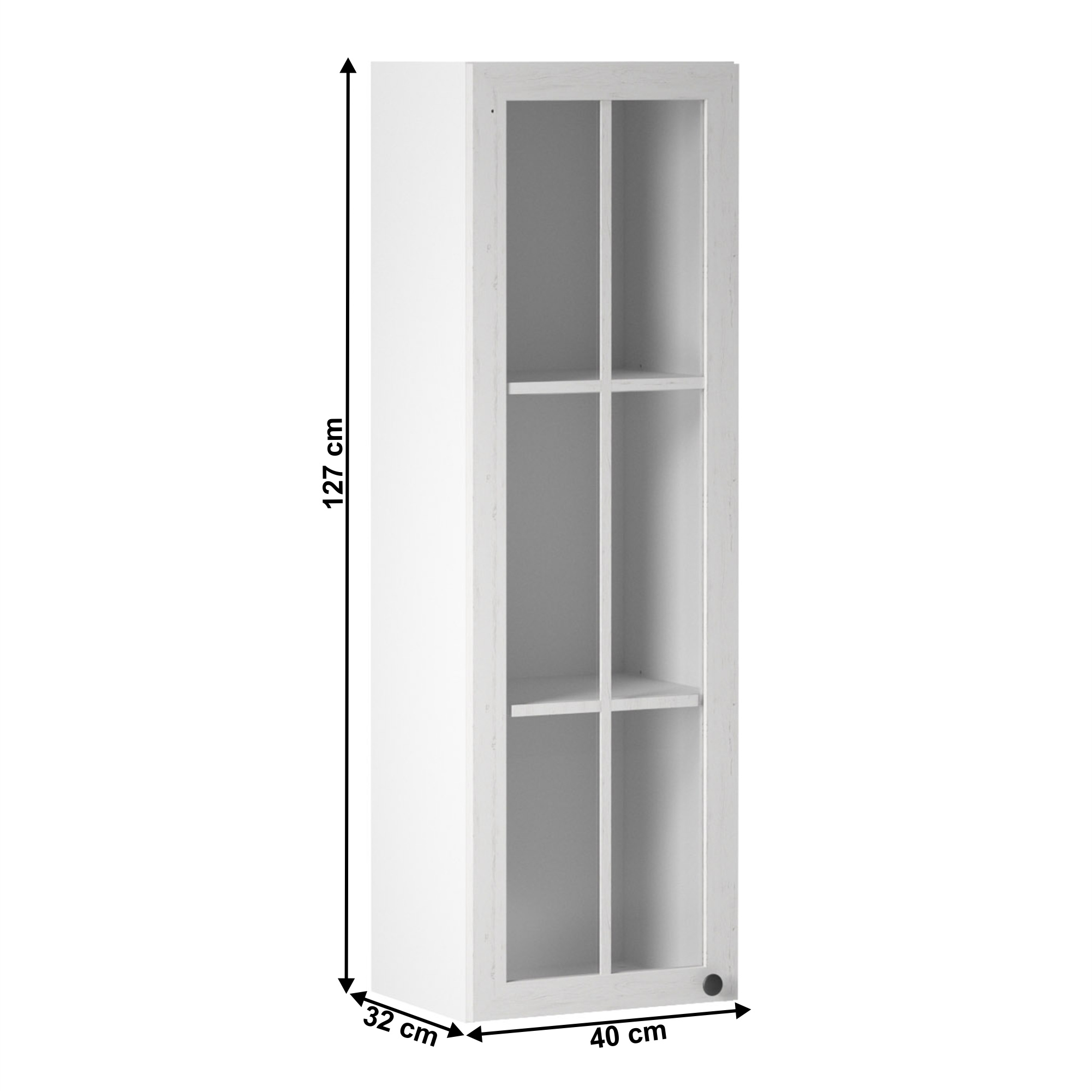 Horní skříňka se sklem W40S, bílá / sosna andersen, levá, PROVANCE